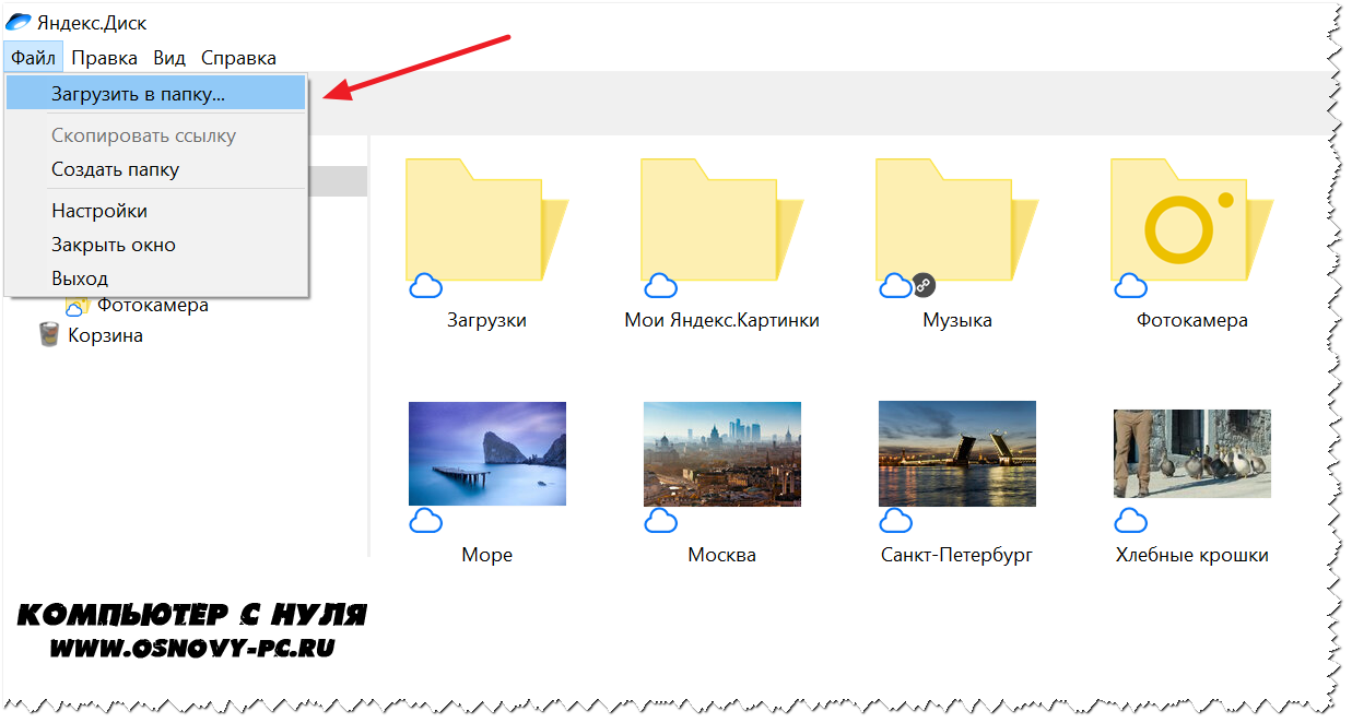 То, что вы хотите сохранить в созданную папку, прекрасно копируется с компьютера при помощи простого перетаскивания. При перетаскивании поместите файл в окно, которое приглашает загрузить файлы на Яндекс Диск.