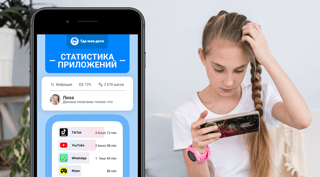 С этой задачей справляется мобильное приложение «Где мои дети». Программа позволяет контролировать использование смартфона ребёнком.Вы узнаете: — не сидит ли ребёнок в YouTube во время отдыха; — не играет ли на телефоне вместо занятий и — какой возрастной рейтинг у игр, в которые он играет.