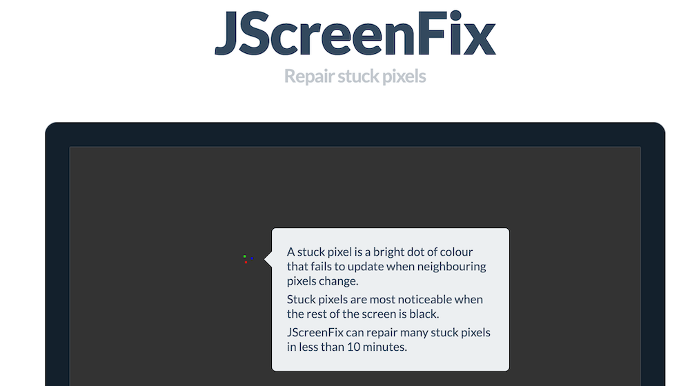 JScreenFix — идеальное решение для починки пикселей. Это веб-приложение, а это означает, что его не нужно устанавливать. Это также делает его подходящим для самых разных платформ, включая iOS и MacOS.