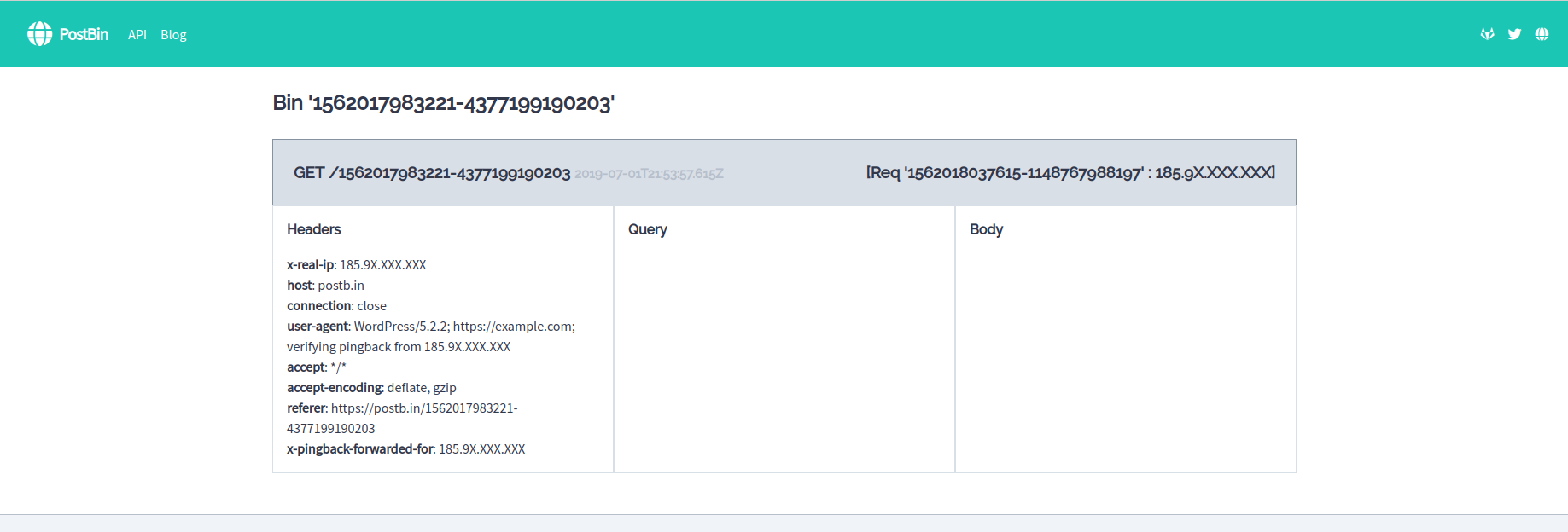 In this case, an attacker is able to leverage the default XML-RPC API in order to perform callbacks for the following purposes: