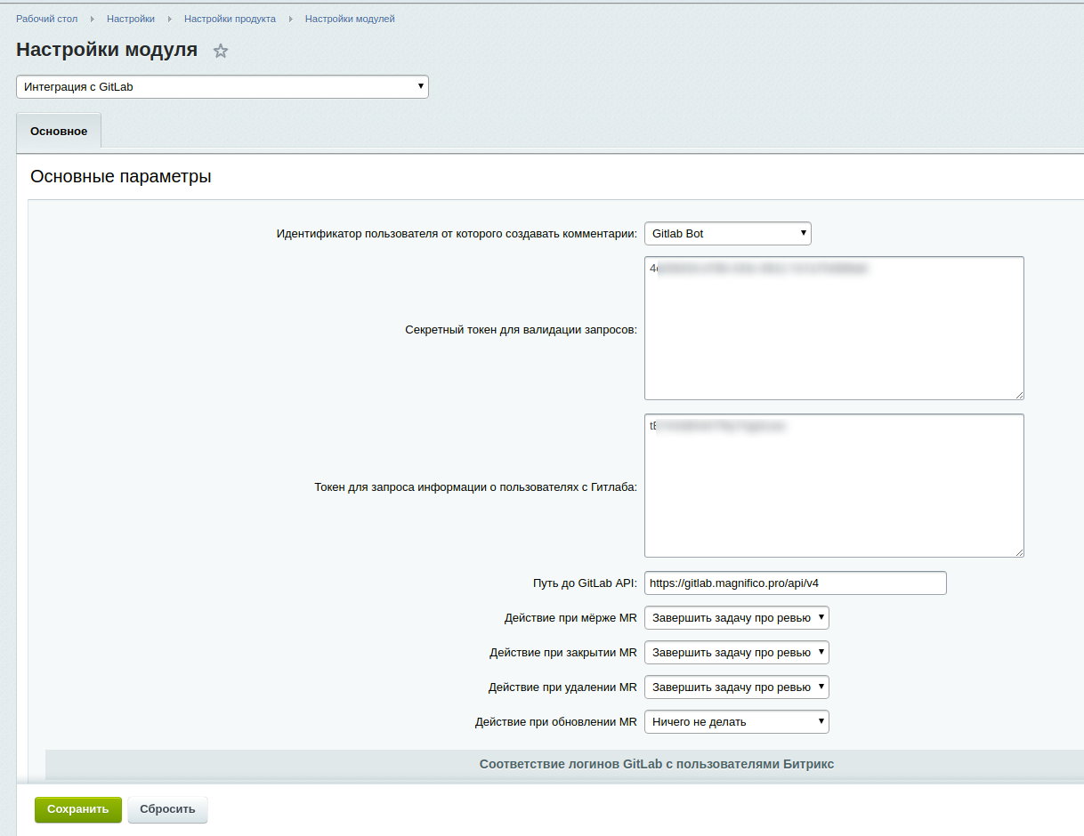 Доступно несколько токенов: для всей системы (доступен в настройках администрирования) либо для одного проекта (доступен в настройках проекта).