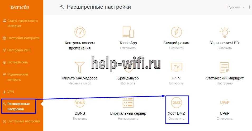 - На роутерах Asus нужная вкладка так и называется – DMZ.