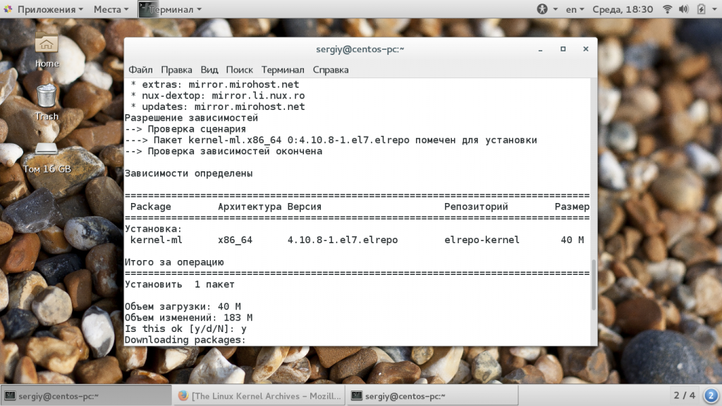 В большинстве дистрибутивов, и в том числе в CentOS предусмотрено обновление пакетов с помощью встроенного пакетного менеджера, например, yum или apt. Но тем не менее, такой способ позволяет обновить ядро CentOS только до последней версии, которая есть в репозитории. Естественно, что там еще нет самой свежей версии, которая есть на kernel.org.