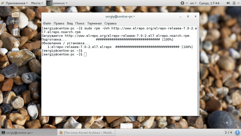 Воспользовавшись ссылкой, скачиваем ядро на компьютер с Linux: