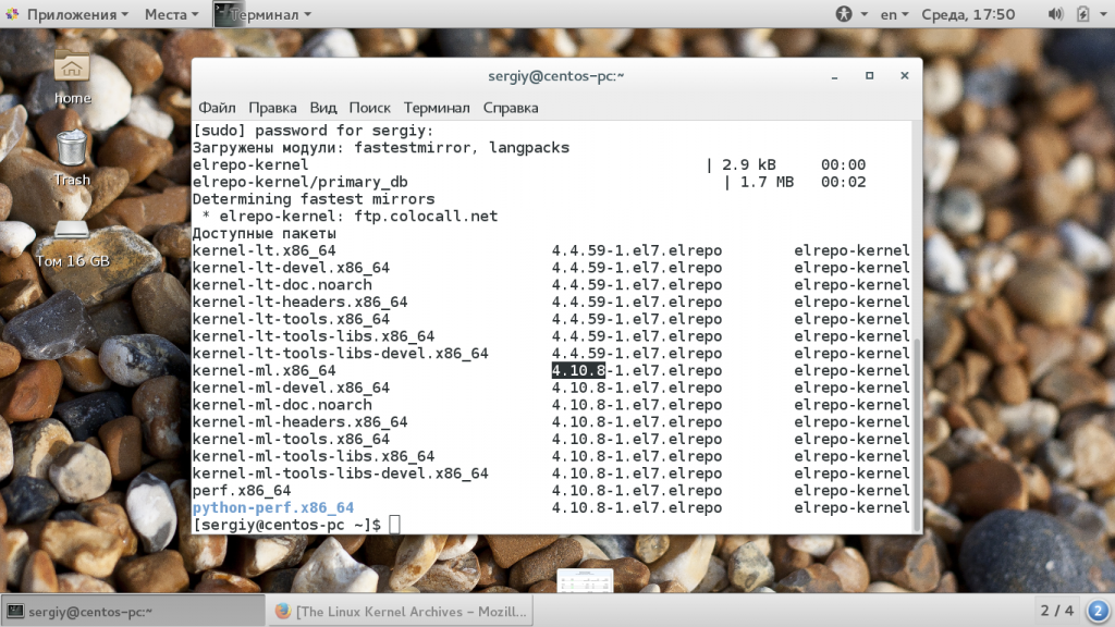 И так, сейчас мы видим, что доступна версия 4.10.8, а это самая новая стабильная версия, исходники которой есть на kernel.org. Дальше осталось установить версию ядра из этого репозитория:
