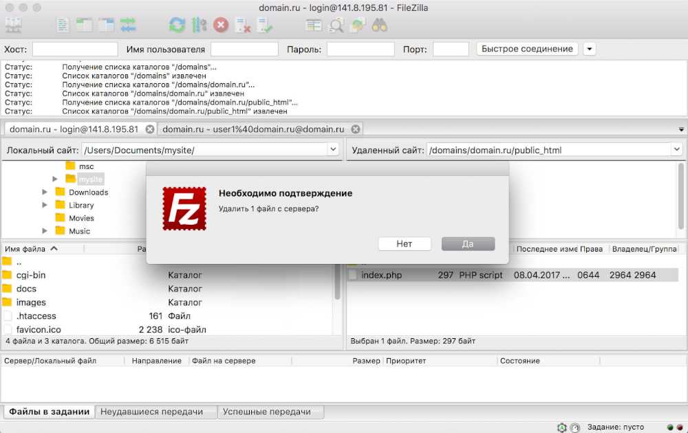 При помощи FileZilla можно изменять права доступа к файлам и папкам, находящимся на удаленном сервере.