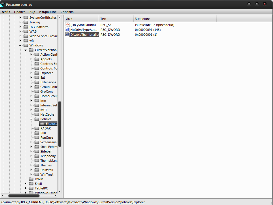 - Найдите и удалите параметр DisableThumbnails;