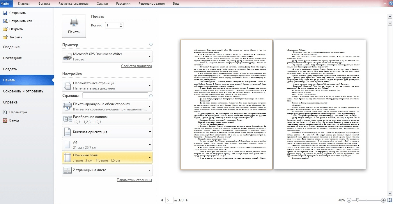 Какой бы способ вы ни выбрали, после печати документа обязательно проверьте результат и убедитесь, что все страницы правильно расположены и пронумерованы, колонтитулы находятся на своих местах, размер полей подобран без ошибок. Лучший вариант — перед изготовлением книги или брошюры провести тестовую печать