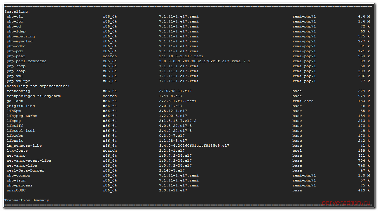 # yum install php-fpm php-cli php-mysql php-gd php-ldap php-odbc php-pdo php-pecl-memcache php-opcache php-pear php-xml php-xmlrpc php-mbstring php-snmp php-soap php-zip