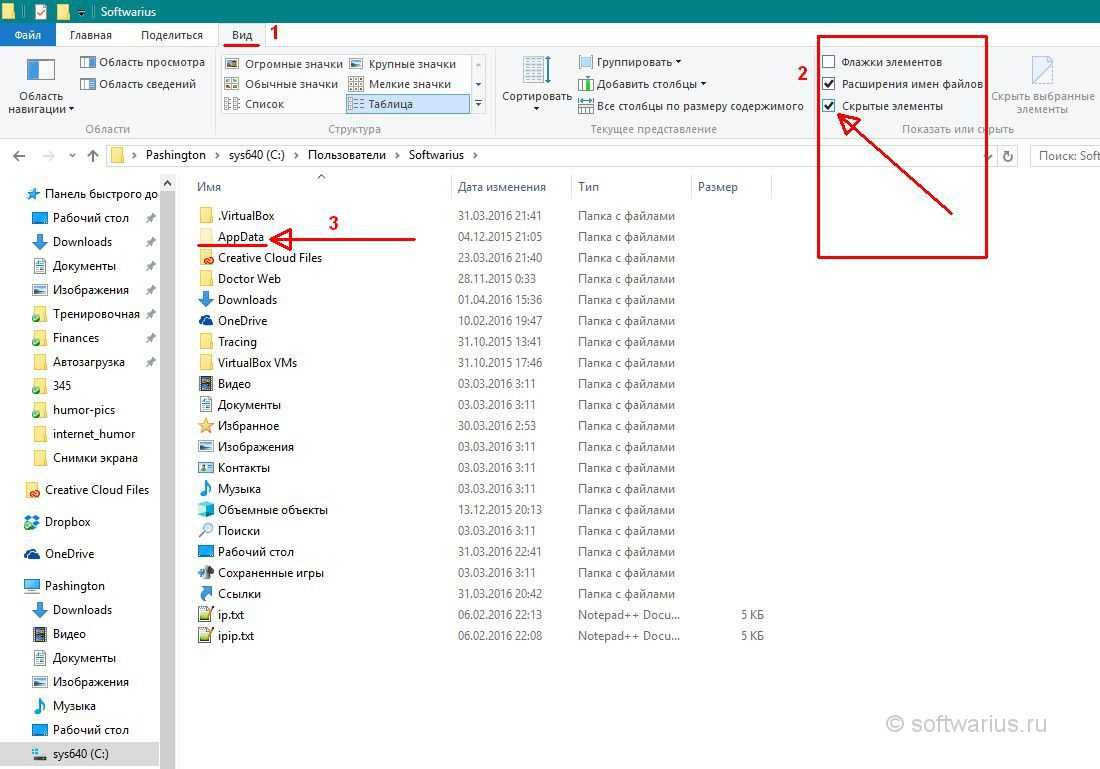 и поставьте галочку, как на скриншоте. После этого появится папка AppData. Заходим внутрь и продолжаем наше путешествие…