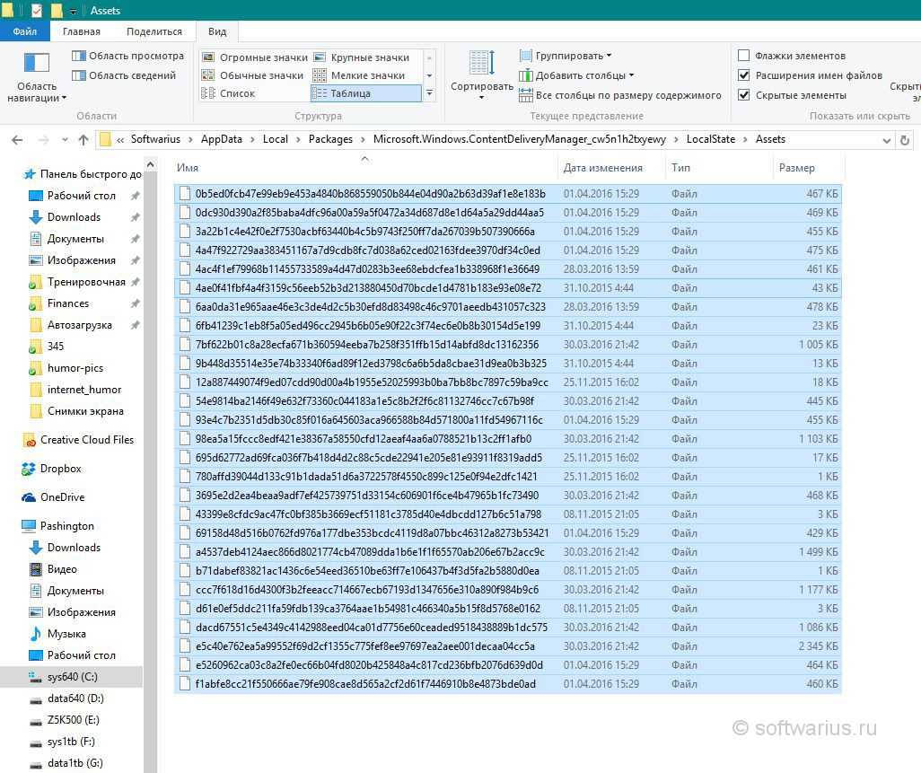 Для того, чтобы найти картинки экрана блокировки на Windows 10, стоит изначально включить отображение скрытых файлов и папок. Далее переходим по адресу: «C:UsersВаше_Имя_ПользователяAppDataLocalPackagesMicrosoft.Windows.ContentDeliveryManager_cw5n1h2txyewyLocalStateAssets». Именно в этой папке будут находиться все картинки, которые используются на экране блокировки.