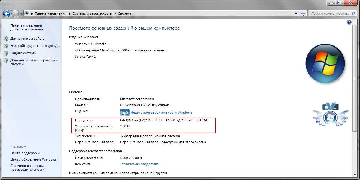 Устаревшая аппаратная часть ПК — еще один источник постоянных сбоев в работе веб-проводника. Для нормальной работы Хрома в Виндовс 7 нужно от 4 ГБ памяти, а для «десятки» лучше все 8. Чтобы узнать реальные параметры собственного железа, нужно открыть меню «Пуск» и запустить «Панель управления», где выбрать «Система». В открывшемся окне отображается запрашиваемая информация.