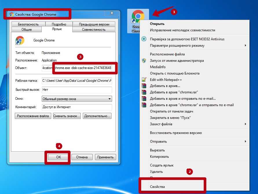 Получается такая строчка: «C:\Program Files (x86)\Google\Chrome\Application\chrome.exe» -disk-cache-size-2147483648.