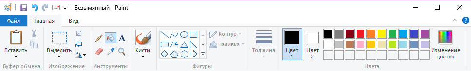 Вкладка «Главная» содержит в себе инструменты для редактирования и создания изображения: Кисти, Фигуры и различные Цвета и т.д.