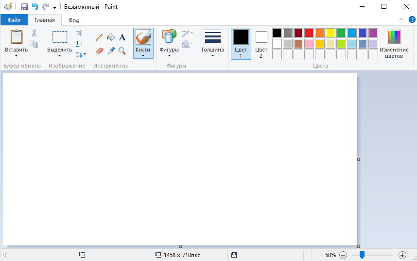 Не зависимо от способа открытия Paint, появится окно как на рисунке ниже.