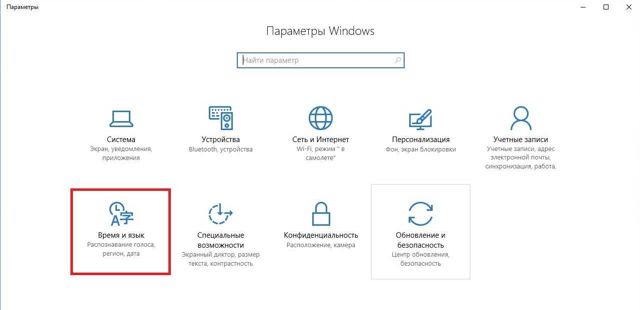 Войдя в консоль «Параметры Windows», разверните блок «Время и язык».