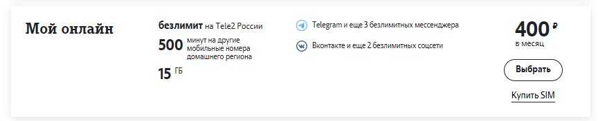 «Мой онлайн». Вы получаете 15 ГБ интернета и 500 минут на другие номера домашнего региона. Но интернет будет безлимитным, если пользоваться известными мессенджерами и социальными сетями.