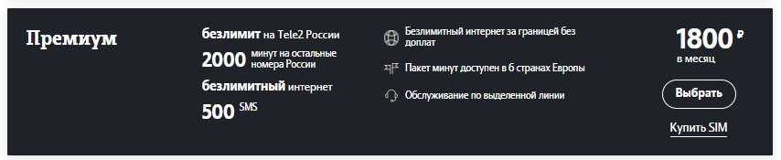 «Премиум». И здесь будет всё: безлимитный интернет и звонки по России, а также 500 SMS и 2000 минут на остальные номера.