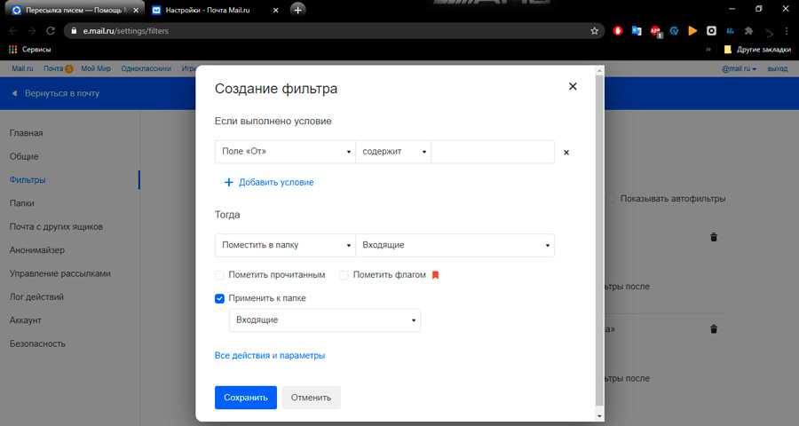 Проделанные манипуляции позволяют перенаправлять все сообщения из Mail.ru на указанный в настройках электронный адрес.
