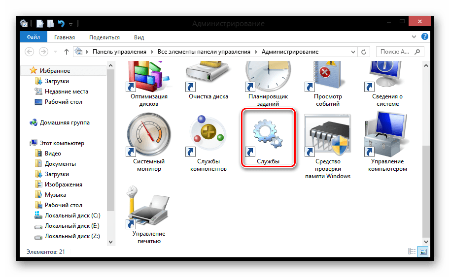 Здесь отыщите пункт «Службы» и дважды щелкните по нему.