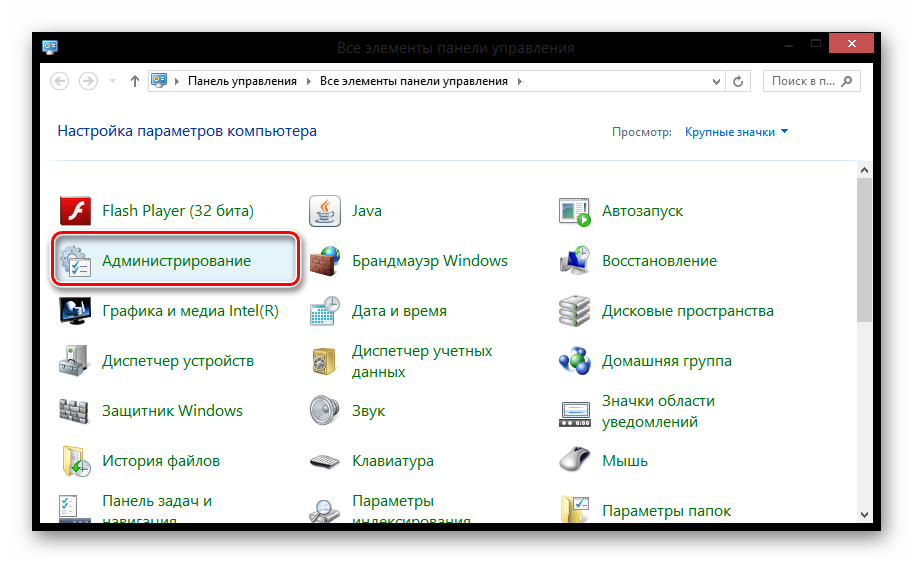 Затем в открывшемся окне найдите элемент «Администрирование».