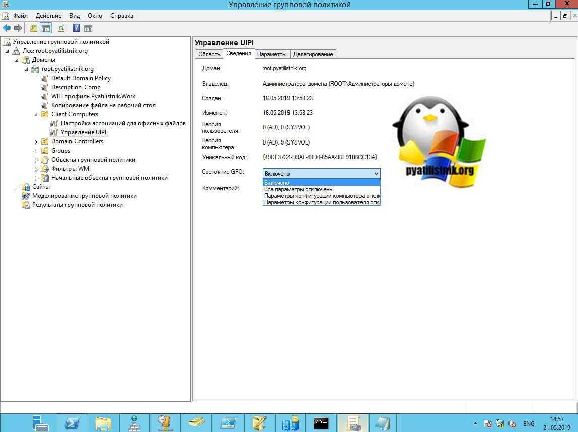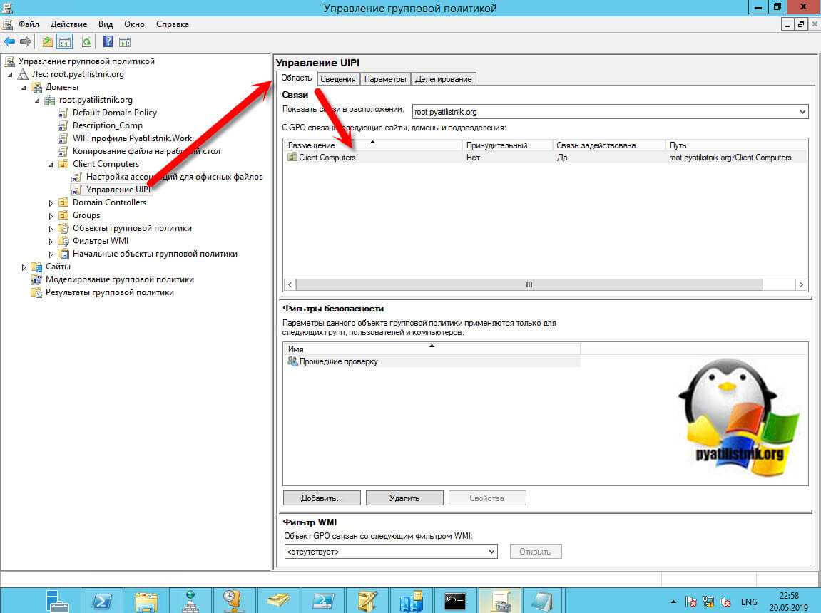 Предположим, что у меня есть групповая политика, которая применяется на организационное подразделение «Client Computers». Политика называется «Управление UIPI». По какой-то причине пользователь жалуется, что она у него не применилась.