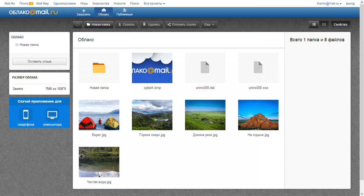 Теперь, чтобы сохранить эти фотографии на лэптопе, нужно зайти в это облако с той же учетной записи на переносном компьютере. Для удобства сервис предусмотрел как одиночное, так и массовое скачивание фото с помощью отметок(выделения). Облачный сервис сохраняет не только изображения, но и видеофайлы.