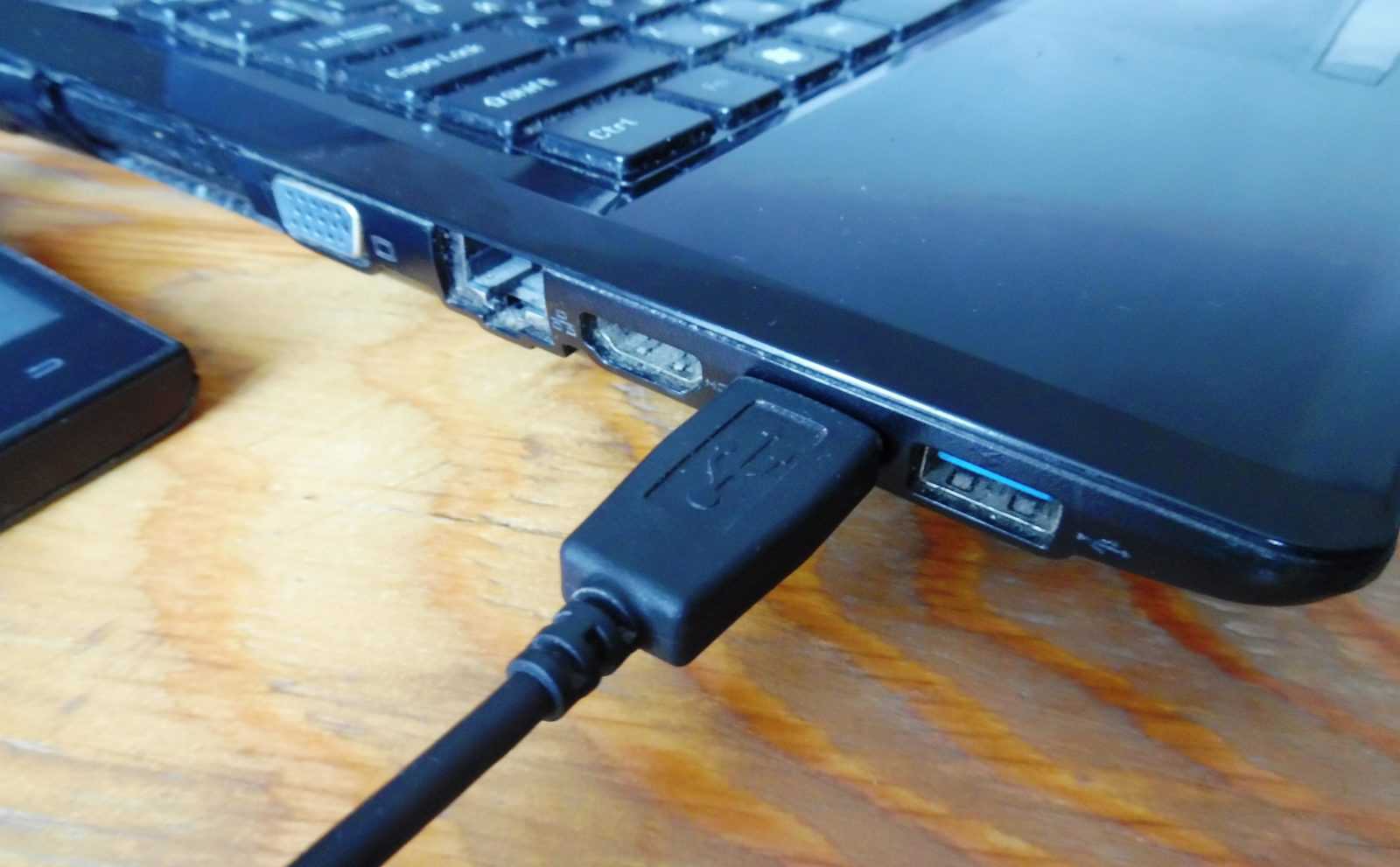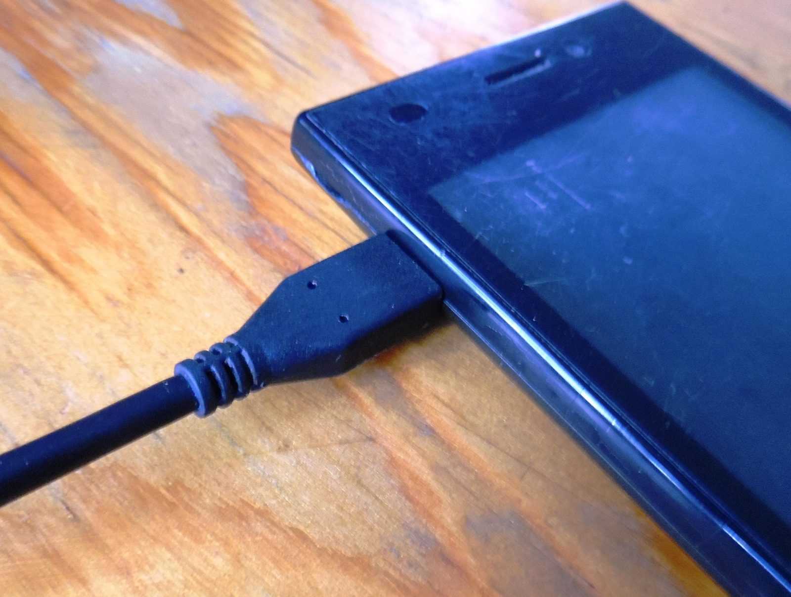 - Подключаем шнур к телефону и одному из USB-портов.