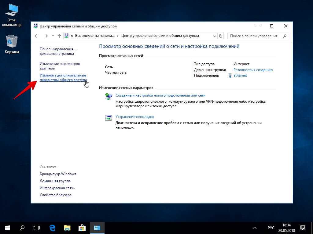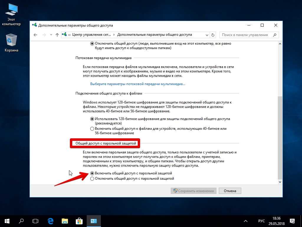 Там будет раздел, позволяющий изменить параметры ОД, в котором нужно поставить отметку рядом с пунктом “Включение общего доступа …”.