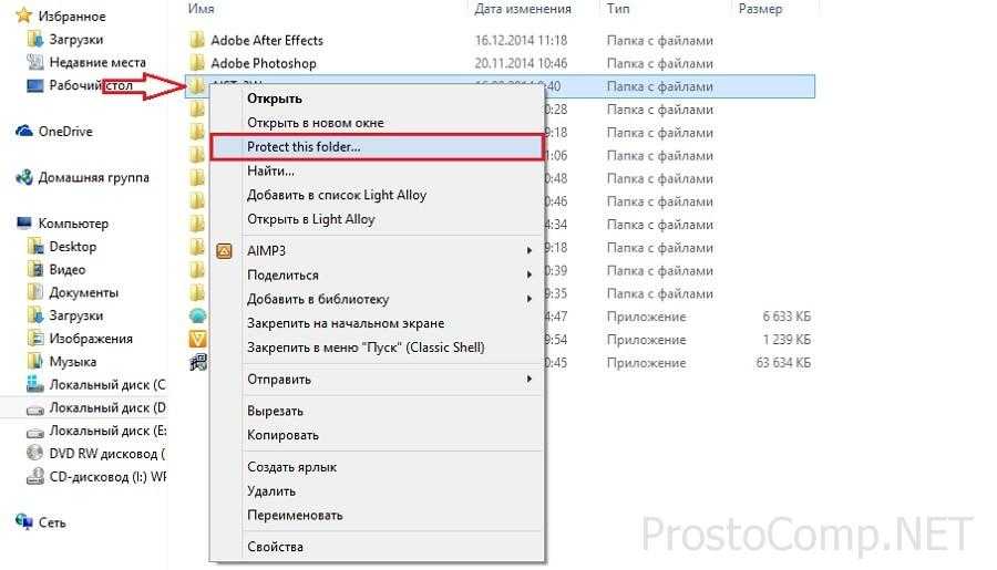 Еще один удобный инструмент по защите содержимого ваших папок. Небольшая программка размером в пару сотен килобайт при первом запуске внедряется в контекстное меню проводника Windows.
