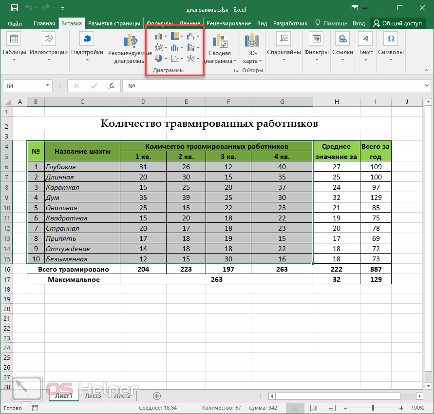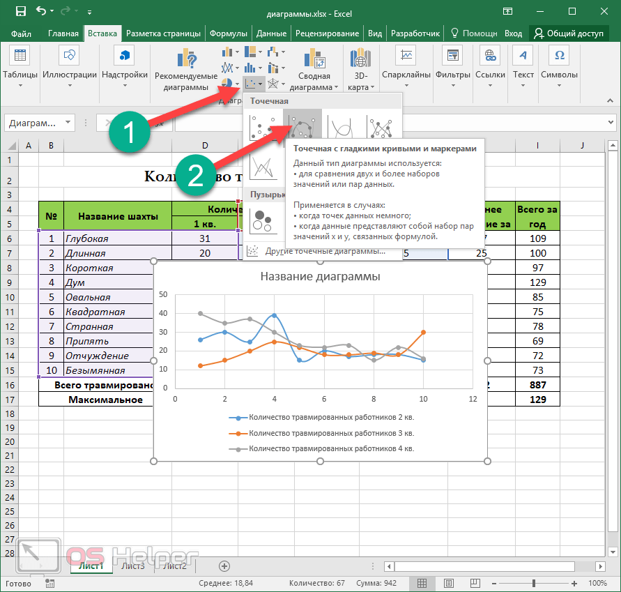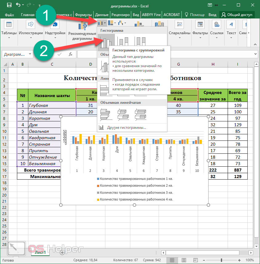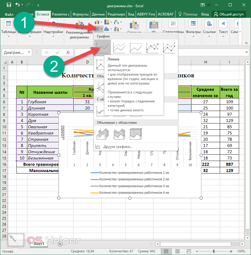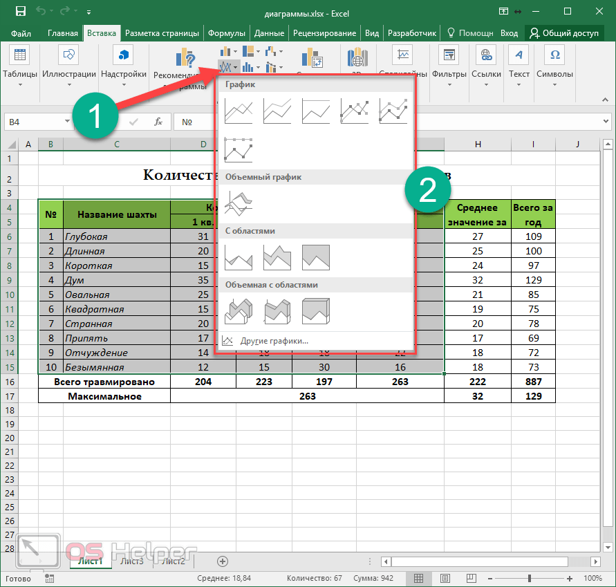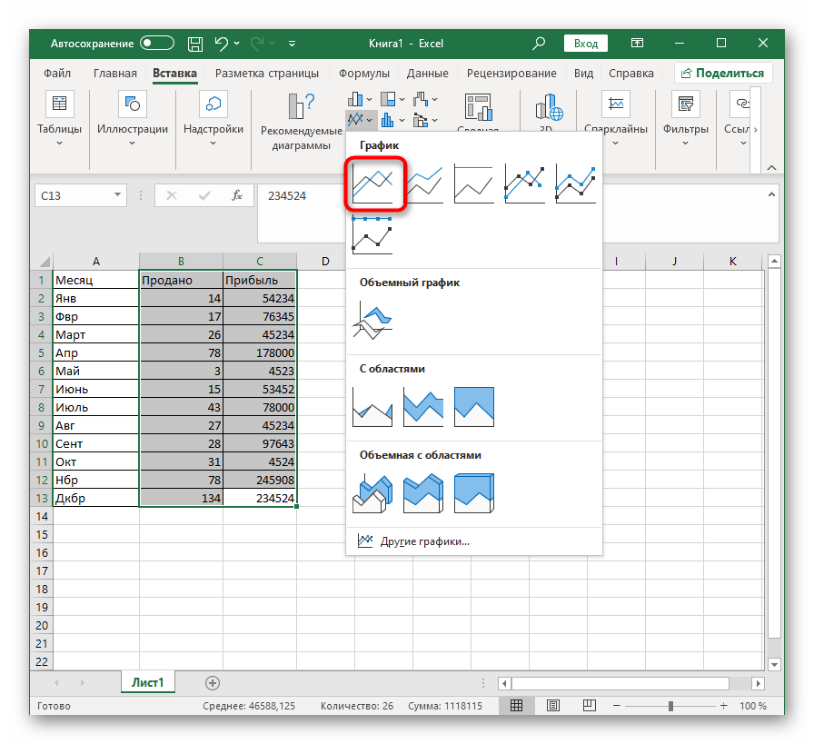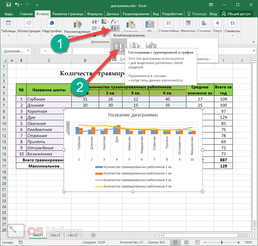 Приступим к выполнению каждого действия, производимого при построении комбинированных графиков, гистограмм или других типов диаграмм