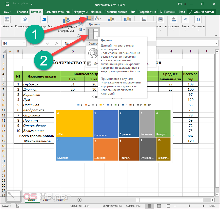 В таком же списке, как отображается на вкладке «Вкладка», найдите подходящую диаграмму и примените ее.