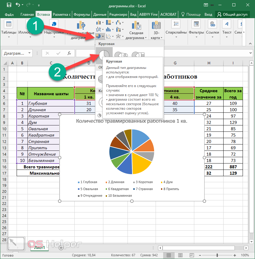 Как создавать различные типы круговых диаграмм в Excel