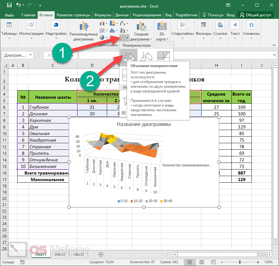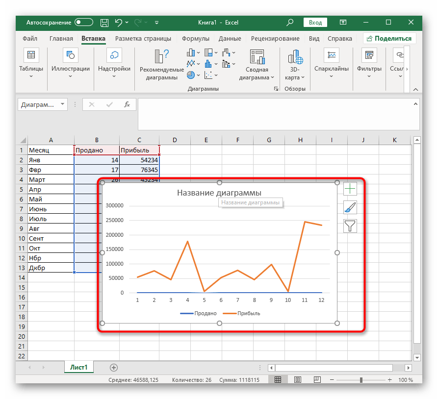 Первым делом, создадим новую диаграмму, используя один из включенных в Excel типов диаграмм: