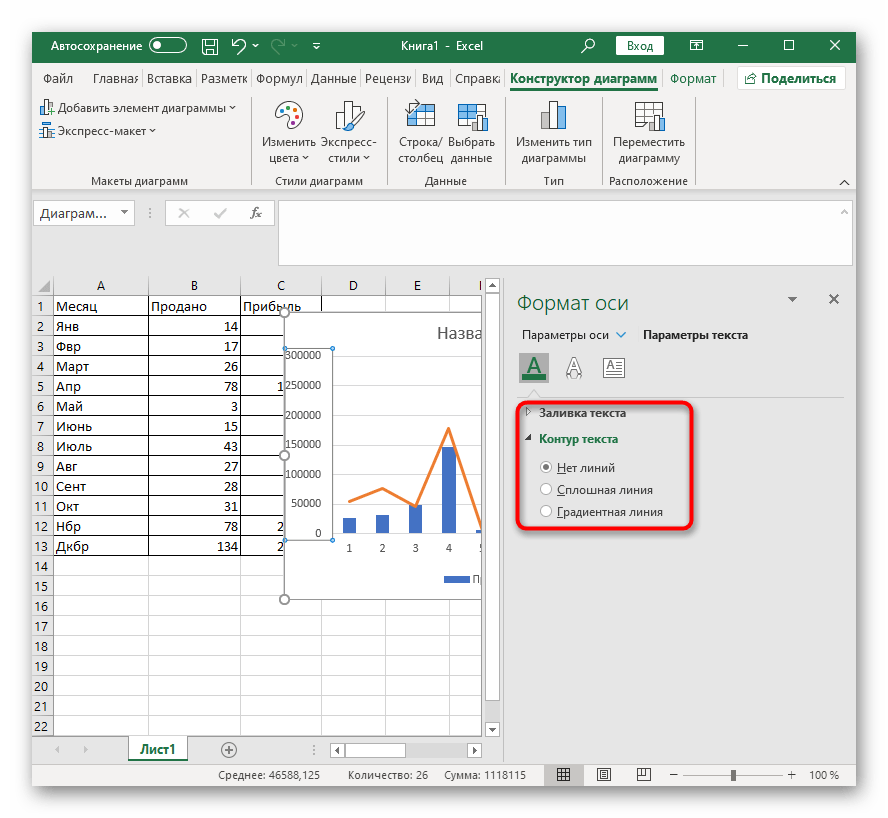 Отдельный раздел называется «Параметры текста», где изменяется цвет надписей, общий стиль и другие опции. Посмотрите все настройки, которые здесь есть, чтобы подстроить внешнее отображение диаграмм под себя.