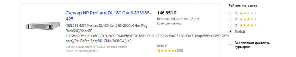 На Яндекс. Маркете был найден сервер следующей конфигурации: