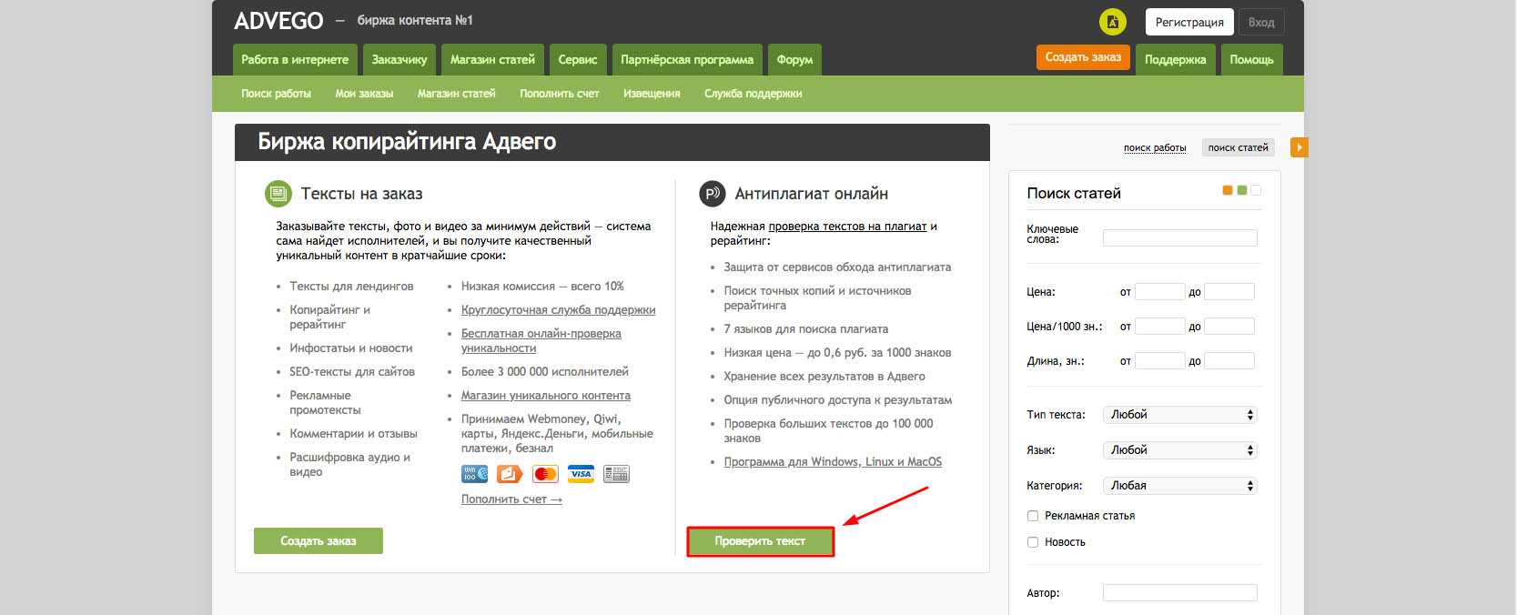 Онлайн сервис «Advego»