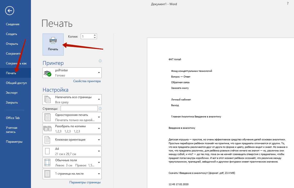 Что касается непосредственно решения задачи о том, как распечатать документ на принтере, то для начала откройте любой документ и перейдите в верхней панели в раздел «Файл». В открывшемся списке кликните на «Печать» и выполните нижеописанные настройки, чтобы напечатанный на компьютере текст был распечатан как следует.