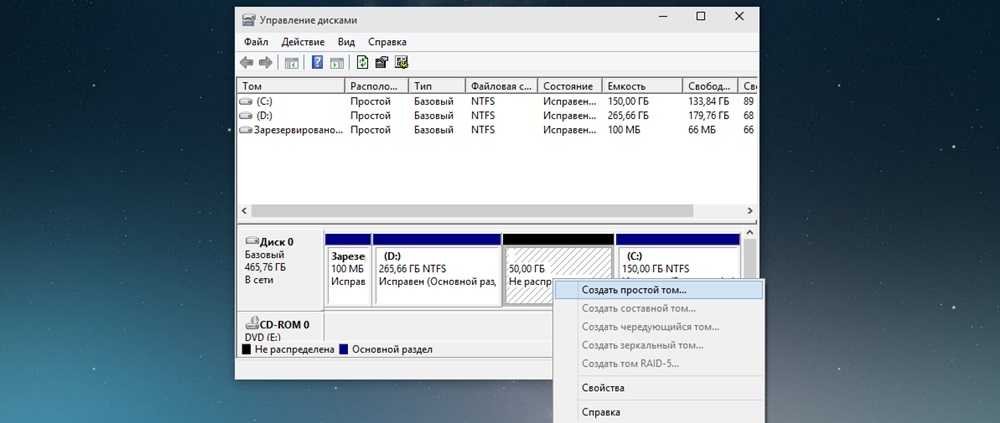 В этом окне вам нужно выбрать нужный вам диск, например, D или H, и кликнуть на нем правой кнопкой мыши. Далее появится диалоговое окно, где необходимо выбрать «Создать простой том».