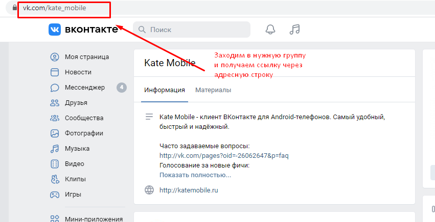 Эта же инструкция работает и для сообществ. Достаточно лишь перейти на главную страницу группы и посмотреть адресную строку интернет обозревателя, а после выполнить шаги представленные выше.