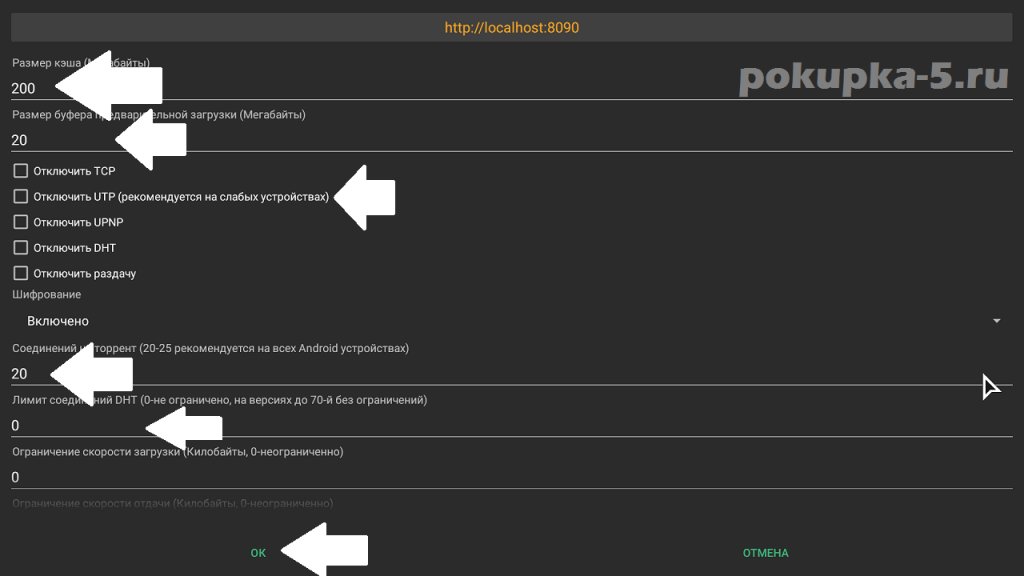 Если ваше устройство с маломощной начинкой, то ставим на галочку – Отключить UTP.
