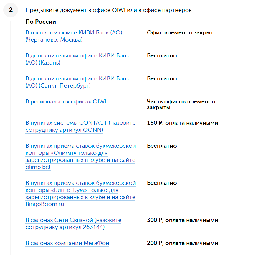 - Идентификация для статус Профессиональный проводится только с личным присутствием. Нужно прийти в один из офисов Киви банка (в Москве, Санкт-Петербурге или Казани) или в пункт партнеров Киви (системы переводов Contact, Связной, Мегафон, букмекерские конторы Олимп или Бинго-Бум). Последние два варианта доступны только для тех, кто состоит в клубе и зарегистрирован на сайте букмекерской конторы.