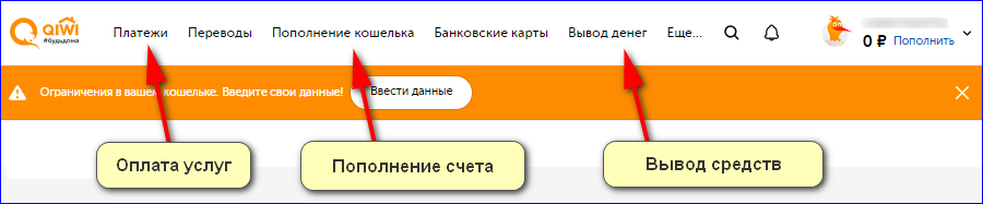 Теперь вы знаете, как оформить электронный кошелек и пройти идентификацию. Но фрилансеру этого недостаточно. Ведь заказчики оплачивают работу на удобную для них систему. При этом приходится собирать деньги из разных платежных ресурсов. С QIWI это не проблема. Находим в верхнем меню соответствующую вкладку: