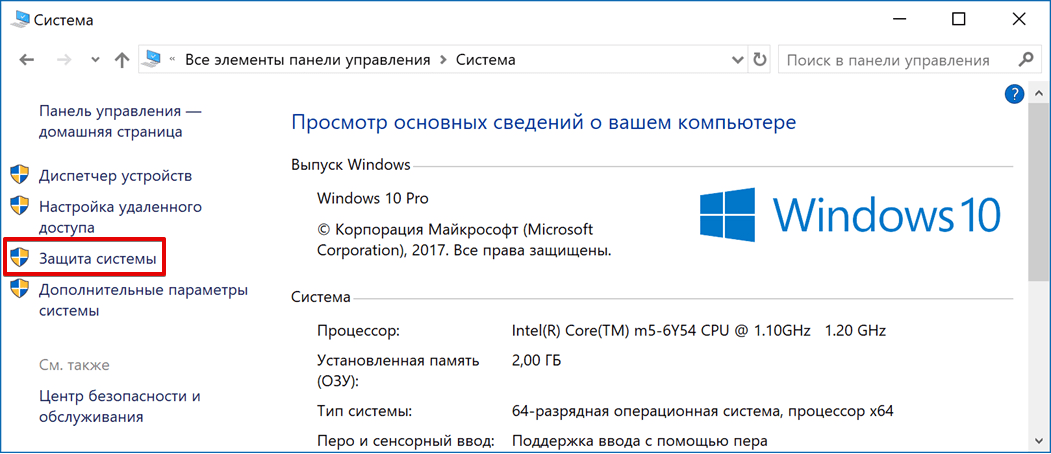 Открываем «Мой компьютер» – «Свойства» – «Защита системы»: