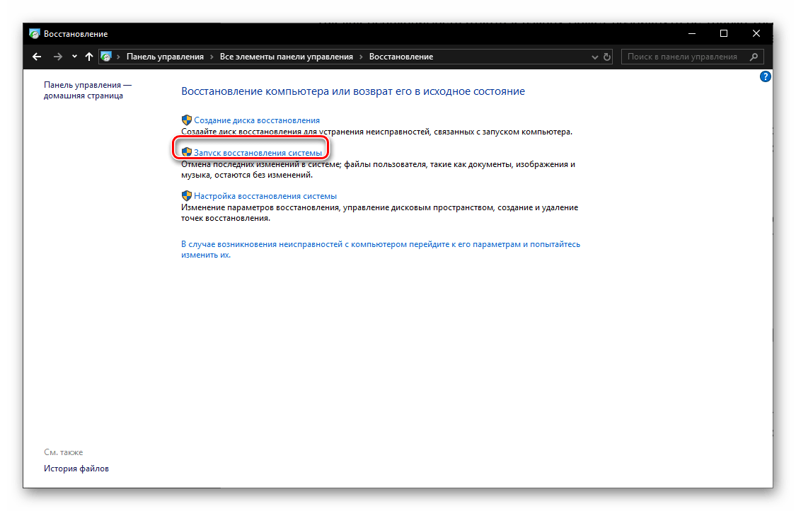 Точка восстановления для того и создается, чтобы в случае необходимости к ней можно было быстро вернуться. Причем выполнение данной процедуры возможно даже в тех случаях, когда Windows 10 отказывается запускаться. Узнать о том, какие существуют способы отката ОС к точке восстановления и как реализовывается каждый из них, вы можете в отдельной статье на нашем сайте, здесь же приведем лишь наиболее простой вариант.