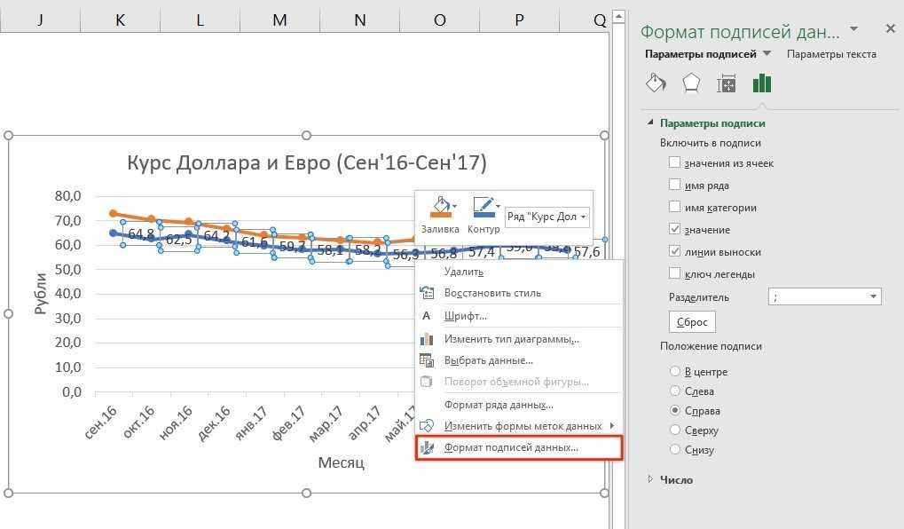 Подписи данных в диаграмме