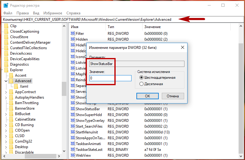 Если захотите вернуть данную иконку обратно, в окно проводника, то для свежесозданного параметра укажите другое значение, которое будет равняться числу 1.