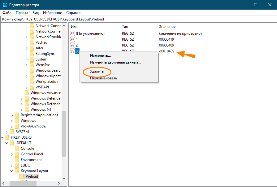 Удаление раскладки клавиатуры