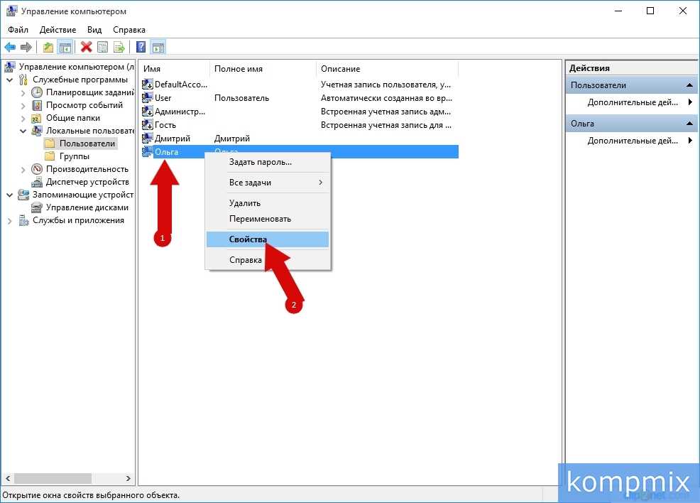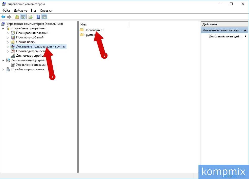 Кликните «Локальные пользователи и группы» и откройте папку «Пользователи».