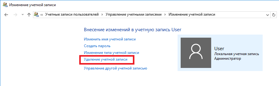 Как удалить учетную запись в Windows 10